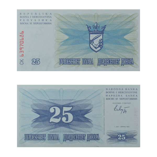 Republic Of Bosnia And Herzegovina Currency Note 25 Dinara