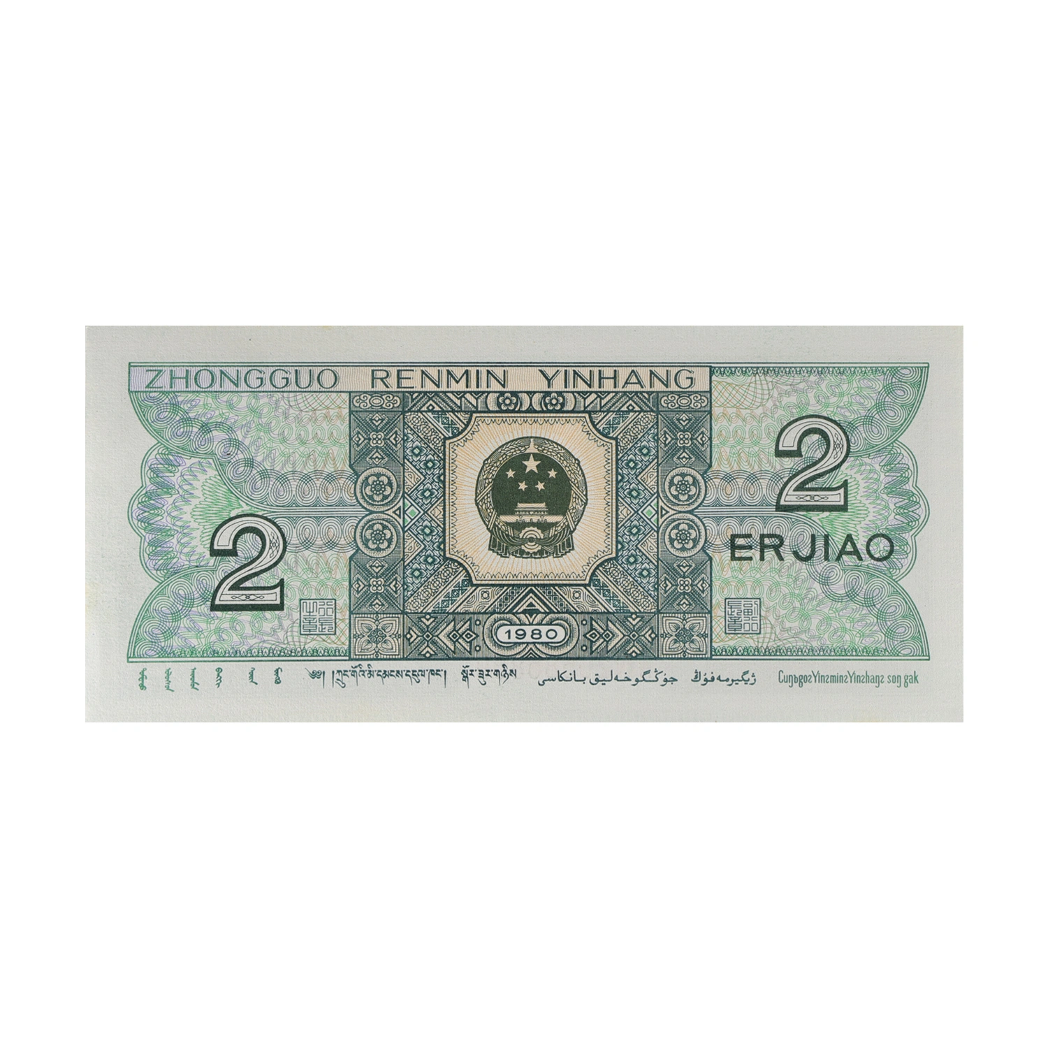 This is Chinese 2 jiao introduced in country located in East Asia. It was issued in the year of 1980.