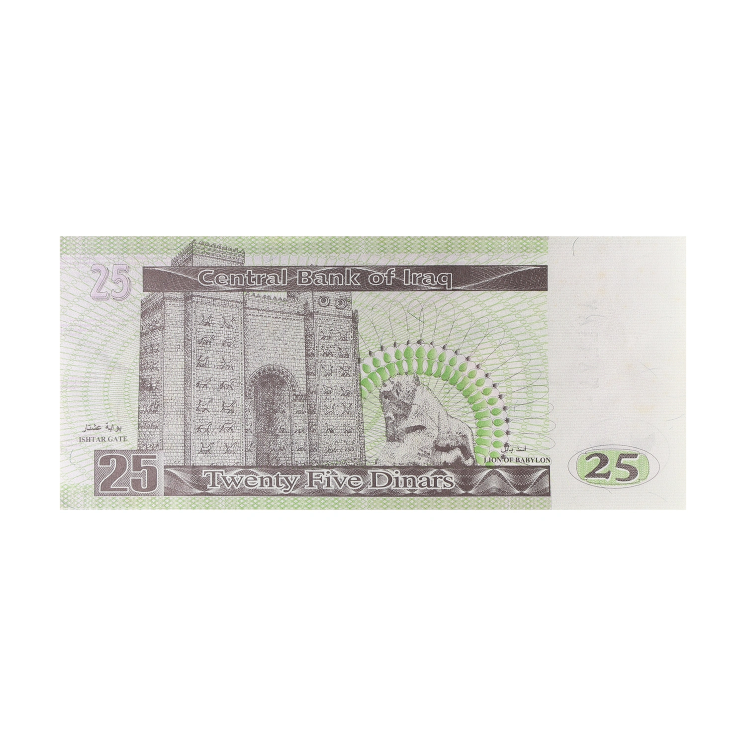 This is Iraqi 25 dinar introduced in country located in western asia. It was issued in the year of 2001.