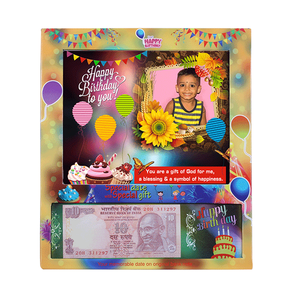 Table Photo Frame With Your Personal Birthday Currency Note And 3D Picture