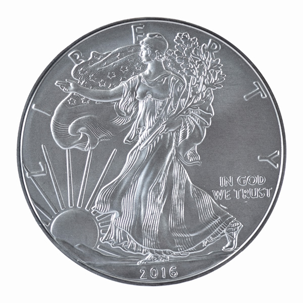 Obverse: Walking Statue of liberty who carries an American flag and branches of laurel and oak. Legend: LIBERTY, IN GOD WE TRUST, and 2016