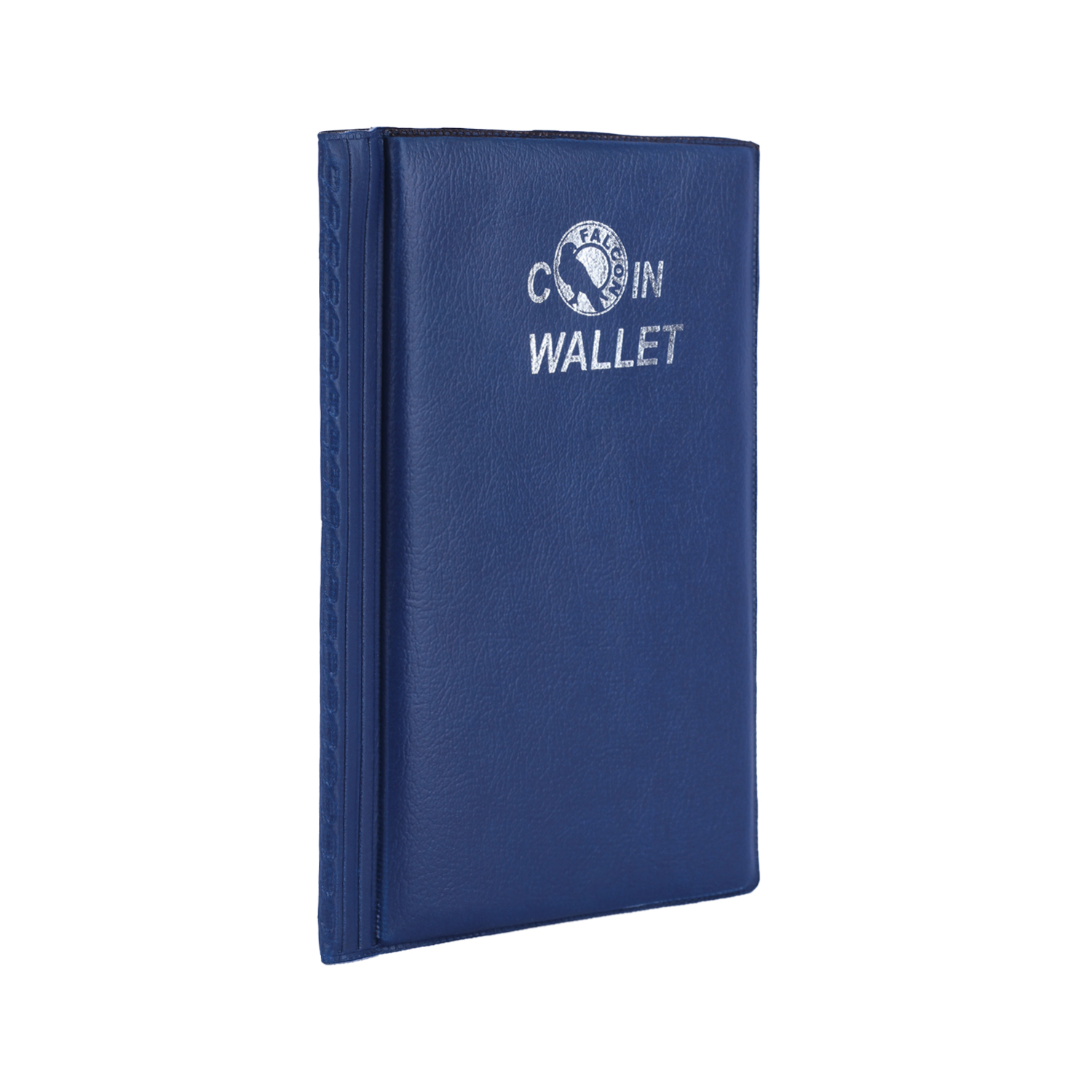 This Wallet is perfect for traveling with your collection and bank vault storage.Each page has inserts for 6 coins with 10 transparent sheets without coin holder. Inserts made of safe and free from acids. Colour: Dark blue Capacity: 60 coins