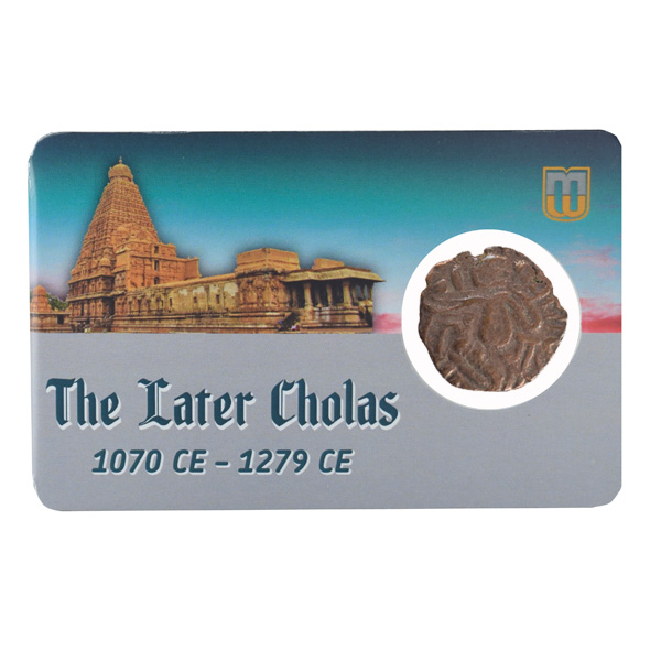 Obverse: King Facing Right with a Fruit near his face. Legend Raja Raja in right flan Reverse:King Facing right with a fruit near his face. Four petalled flower topped by a crescent is seen in the right flan. Deepstambh is seen in the left flan. T1a Disclaimer: The actual coin may have little variation in legend/date/mint