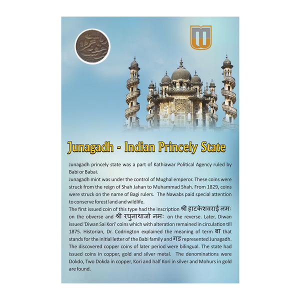 Obverse:Ek Paisa Junagadh Riyaasat in Perso-Arabic legends Reverse: Value in inner circle, Shri Sorath Sarkar and VS date with annulets around it, all in Devanagari legend Disclaimer: The actual coin may have little variation in legend/date/mint