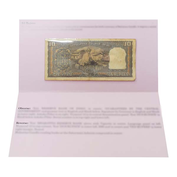 Mahatma Gandhi Commemorative Banknote Description Card - 10 Rupees