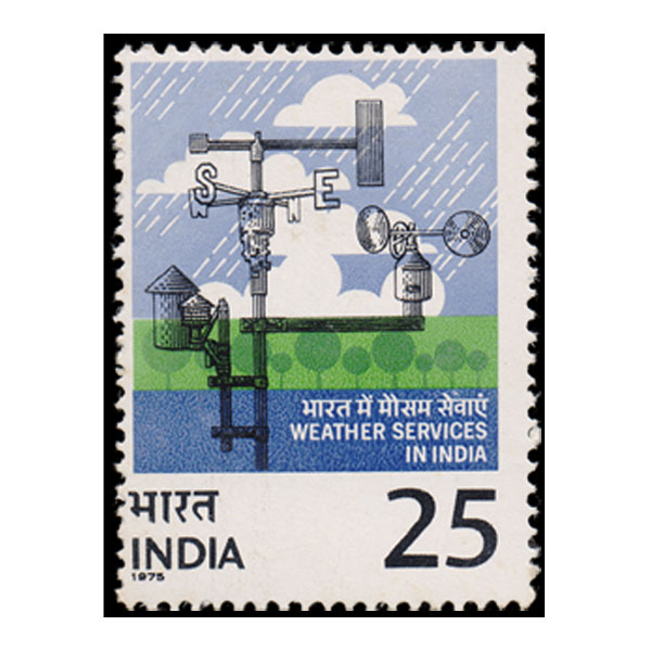 Centenary of the Indian Meteorological Department. The stamp depicts the stylised illustration of the weather and line drawing of weather cock.