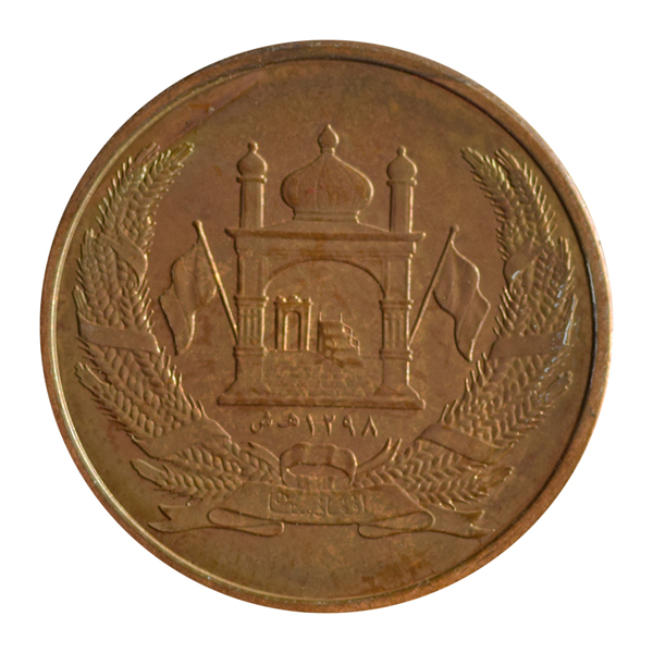 Obverse: Coat of Arm comprised of Mosque flanked by flags and date. Reverse: Denomination. Legends: Bank of Afghanistan and One Afghani.Disclaimer: The actual coin may have little variation in legend/date/mint