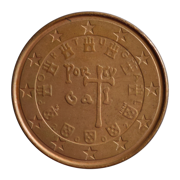 Obverse:Globe, Europe in front and value. Reverse:Royal seal of Afonso Henriques is encircled by alternately the seven country's castles and the five coats of arms. Word 'Portugal' is divided across cross. In outer circle twelve stars of Europe are featured.Disclaimer: The actual coin may have little variation in legend/date/mint