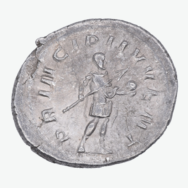 Reverse : Philip II standing left, holding globe and spear. Legend - PRINCIPIIVVENT