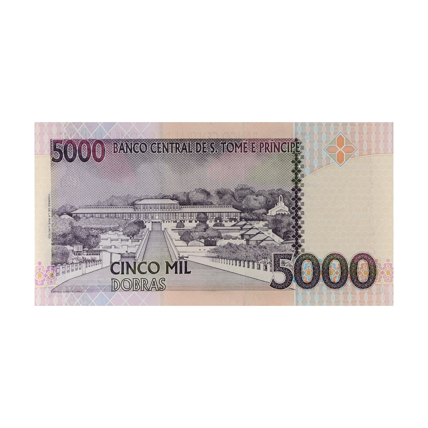 This is 5000 dobras note of Sao Tome and Principe, Gulf of Guinea. It was issued in the year of 2013.