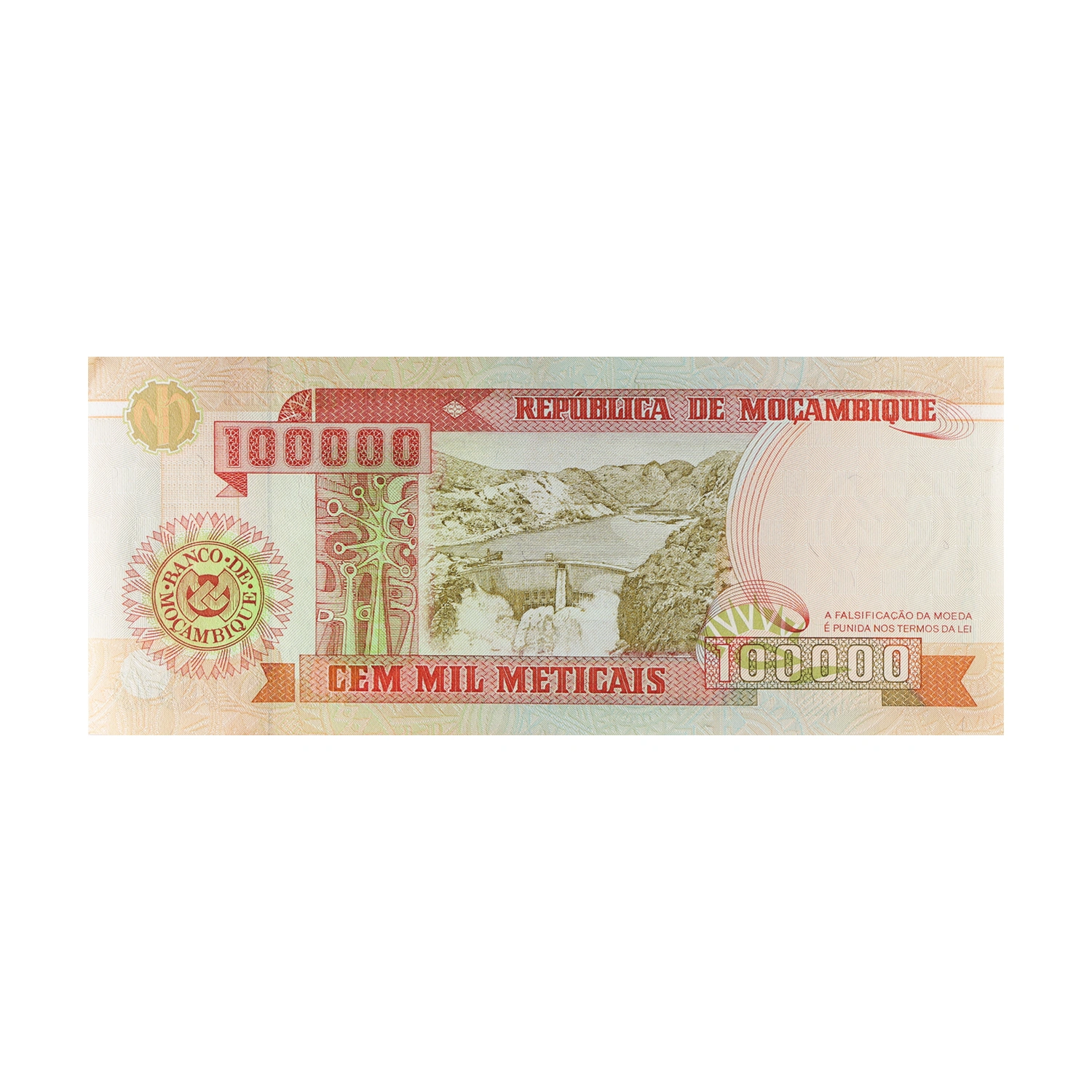 This is 100000 meticals note of Mozambique, South east africa. It was issued in the year of 1993.